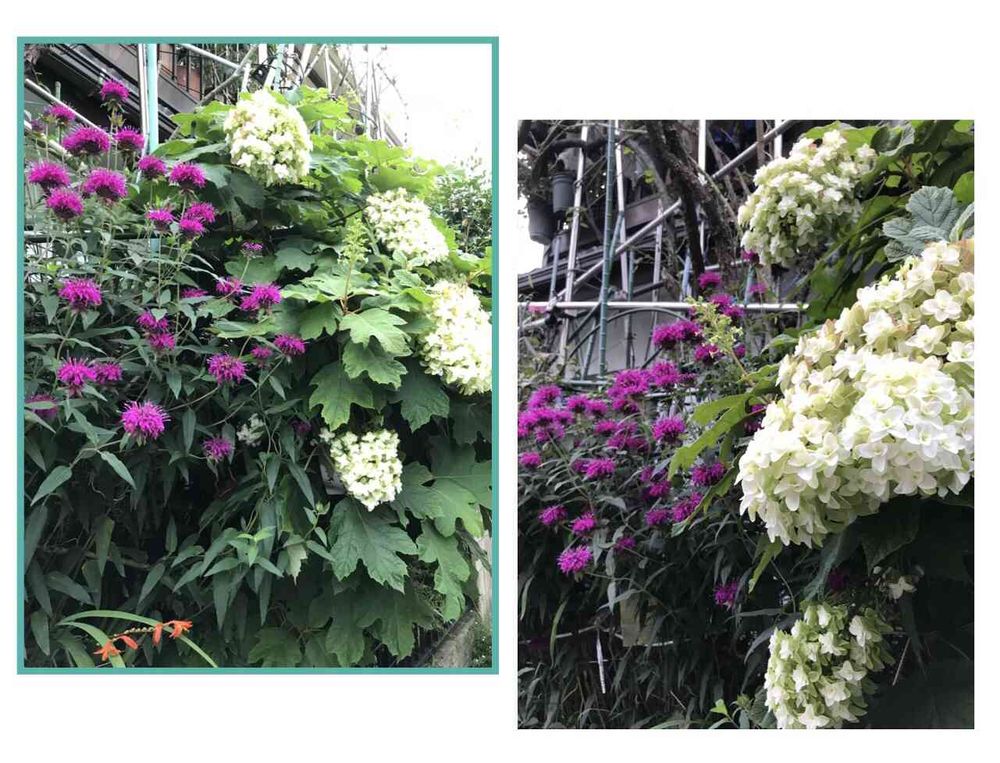 モナルダ(タイマウソウ)とアジサイの競演