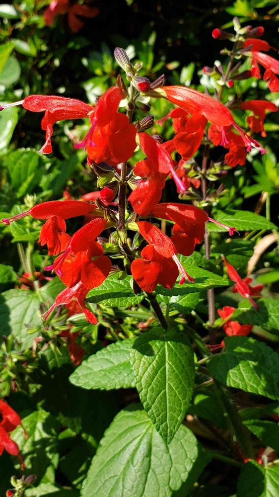 庭に赤のお花 大事。ましてサルビアは安くて丈夫。大事にしましょ❤️上手くいけば冬まで、、、