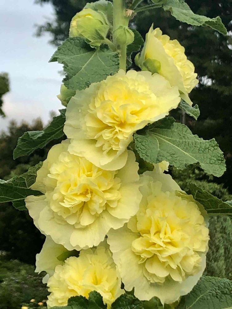 空が暗い、晴れた時もっと綺麗な色になるでしょう😍立葵タチアオイ (アルセア) チェイターズ イエロー🌿🐬