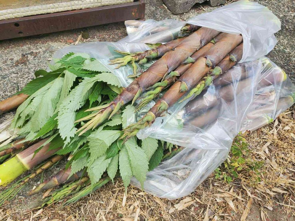 このタケノコの種類はわからないのですが、家の広い庭の竹は多分観賞用風の竹です。広い庭全部おおってたので、バックボーンで抜いたはずなのですが、まだまだ生えてきますね。バラとか植えようと穴掘ると根が出てきたり…抜ける物は抜いて、切れる物は切ってます(笑)