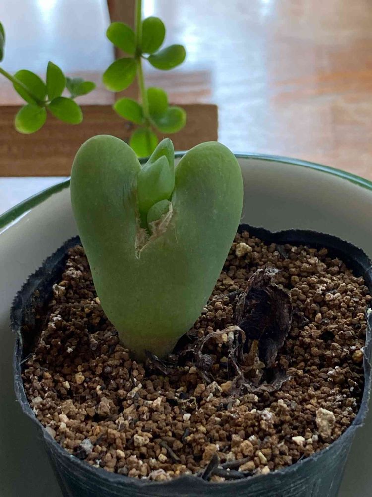 コノフィツム、パッカリ割れてミニハート💕が出てきてるんだけど、こうやって増えていくの?コノフィツムを育てるのは初めてで全くわからないです😢今後どうしたらいいですか??コノフィツムを育てる方いらっしゃいましたら教えて下さい。