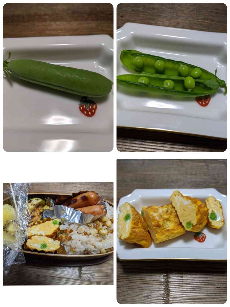 一番果の🔰グリンピース✨なかなか上出来(◍•ᴗ•◍)数が出揃わないけど我慢できずこれだけ今朝収穫。お弁当の卵焼きに変身😋
