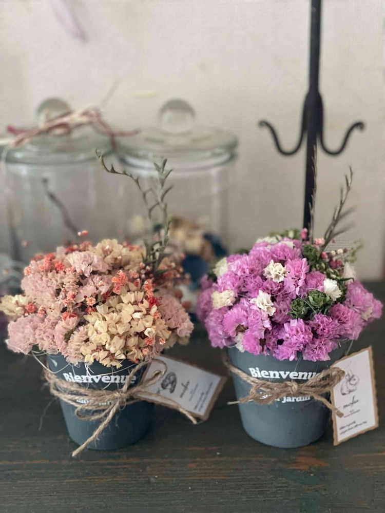 スターチスのセメント鉢アレンジ🌼🌸🌱2つ並べると可愛い🥰