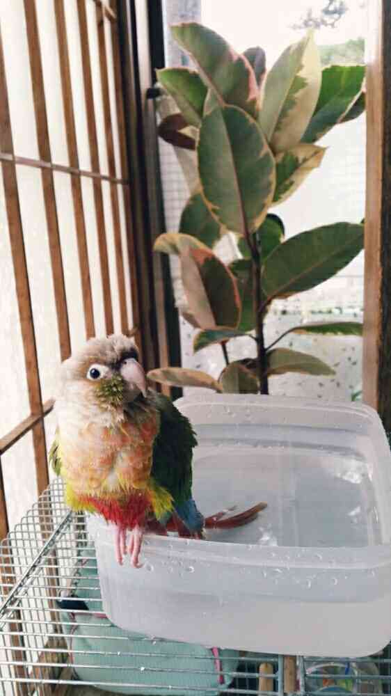 そうなんですよねー!我が家では、ギャーギャー鳴きまくって2~3周ぐるぐる飛び回って水浴びしたい旨をおしえてくれます(。>д<)