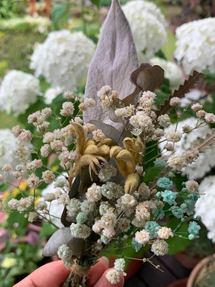今日カット✂️終わってから道の駅に行ってカラーとかすみ草の花束が安くて買ってきたからそのかすみ草をグリセリン法でしてみようかな〜😆