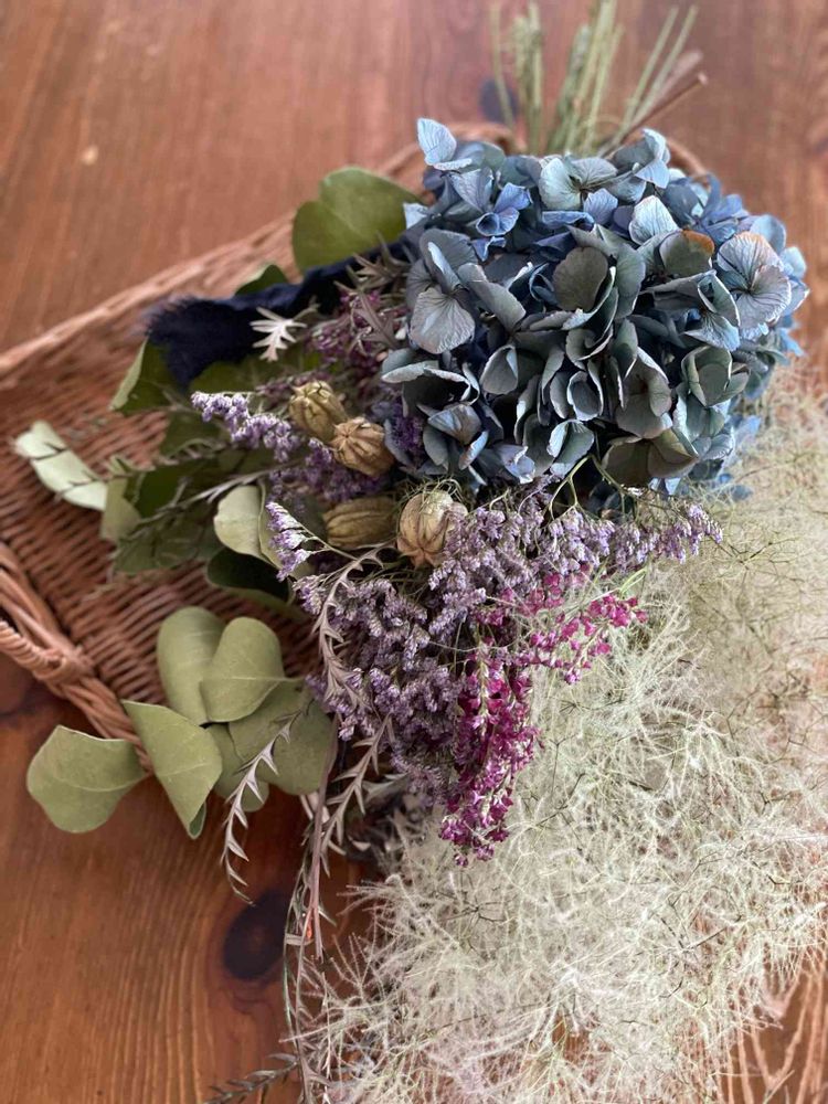 アンティーク紫陽花とスモークツリーのスワッグ🌱🌸🌱