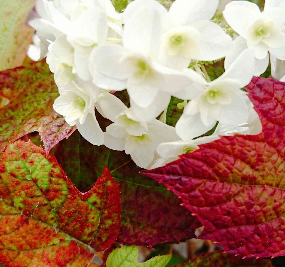 お花の白と紅葉の葉のコントラストがとても素敵だな‼️と思いました🙌