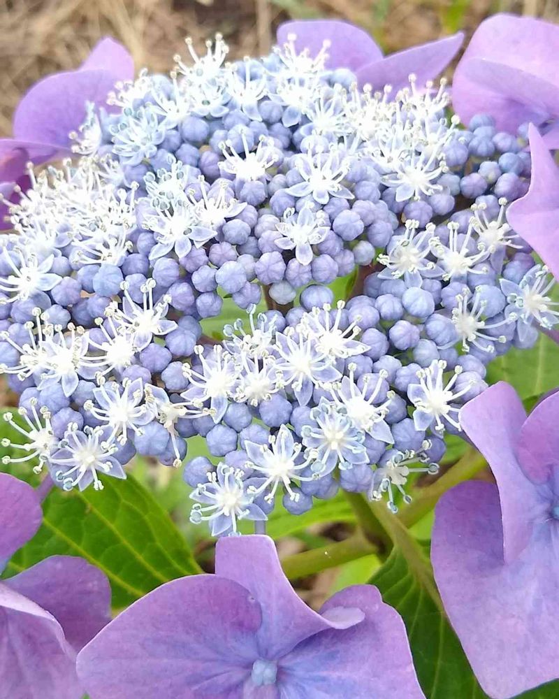 装飾花の美しさを楽しみ、その後、両性花の美しさを愛でる。