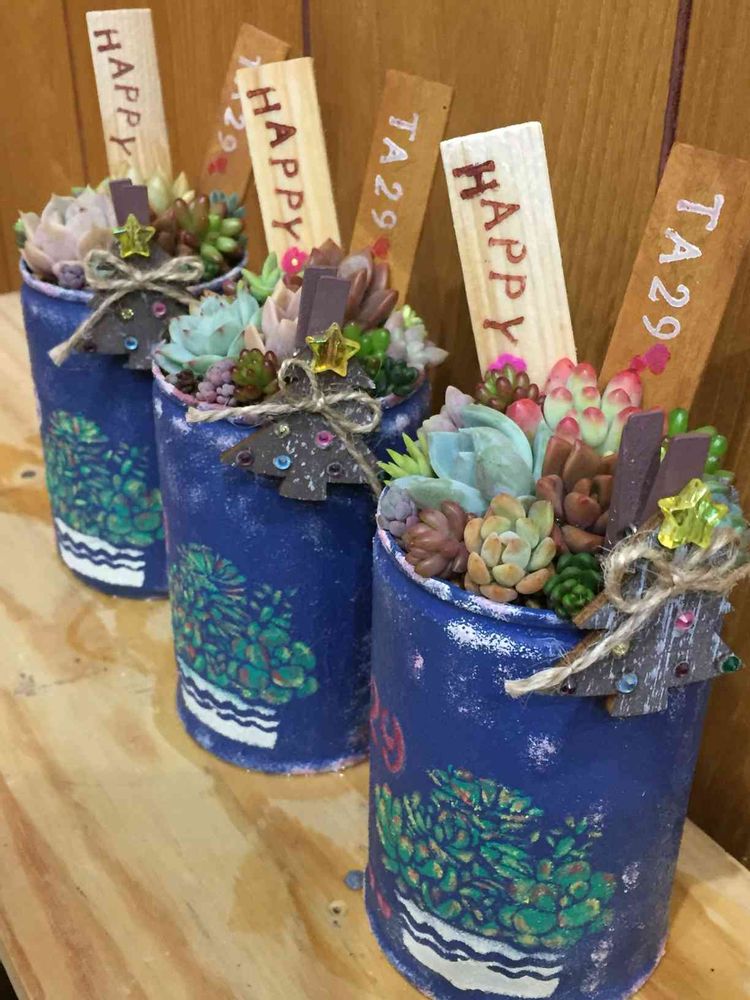 リメ缶作りから 我が家の多肉ちゃん達をカットしての 寄せ植え❗️