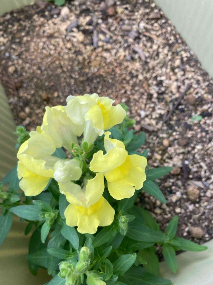 空きプランターに、いつの間にか咲いた金魚草…かな?