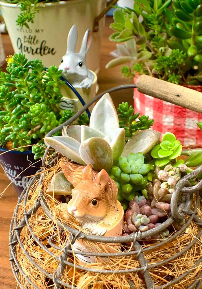 カゴ🧺はちょっと小さいんですが、お手入れ要らずで良いかなと✨この後ルビネちゃんも足しちゃいました(*´∀`*)♬