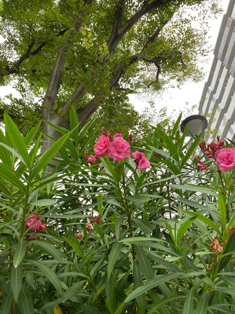 葉っぱはキヨウチクトウのようですが、花はバラのようです。
