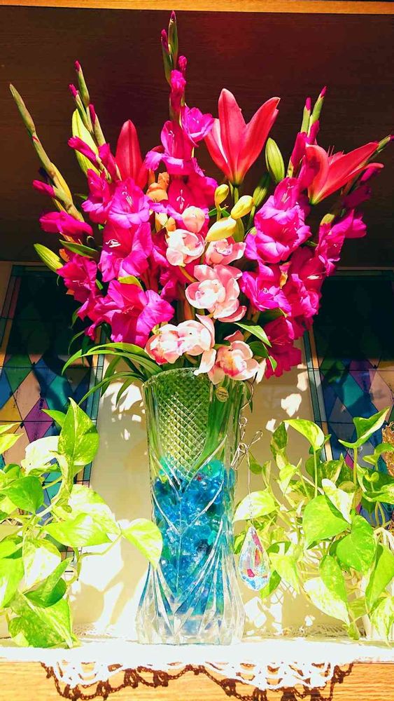 隣のおじちゃんに綺麗な色のグラジオラスをいただいて⤴︎💕