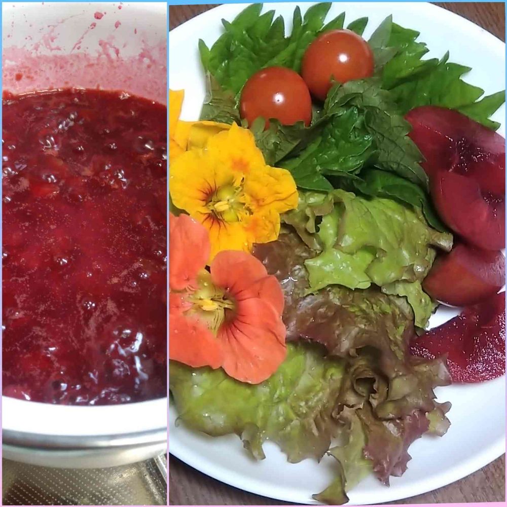 自家製の新鮮野菜でサラダ美味しそう😋ソルダムってすもも?でドレッシングを作ったのですか?