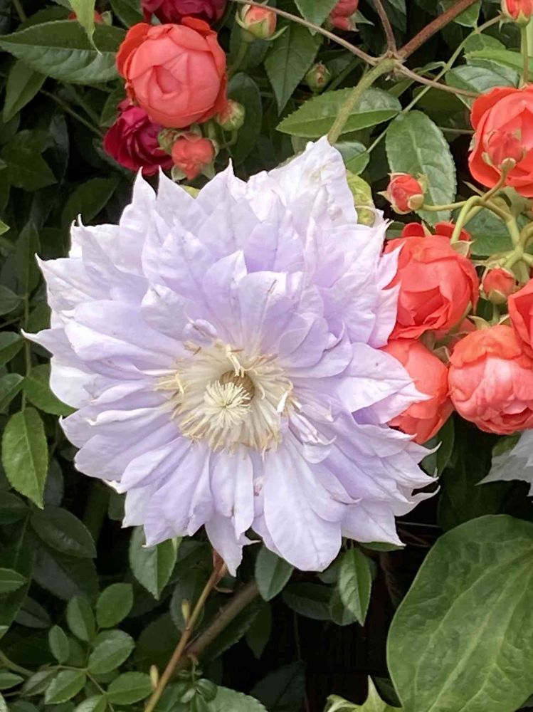 赤い薔薇さんとクレマチスでしょうか🌹❓