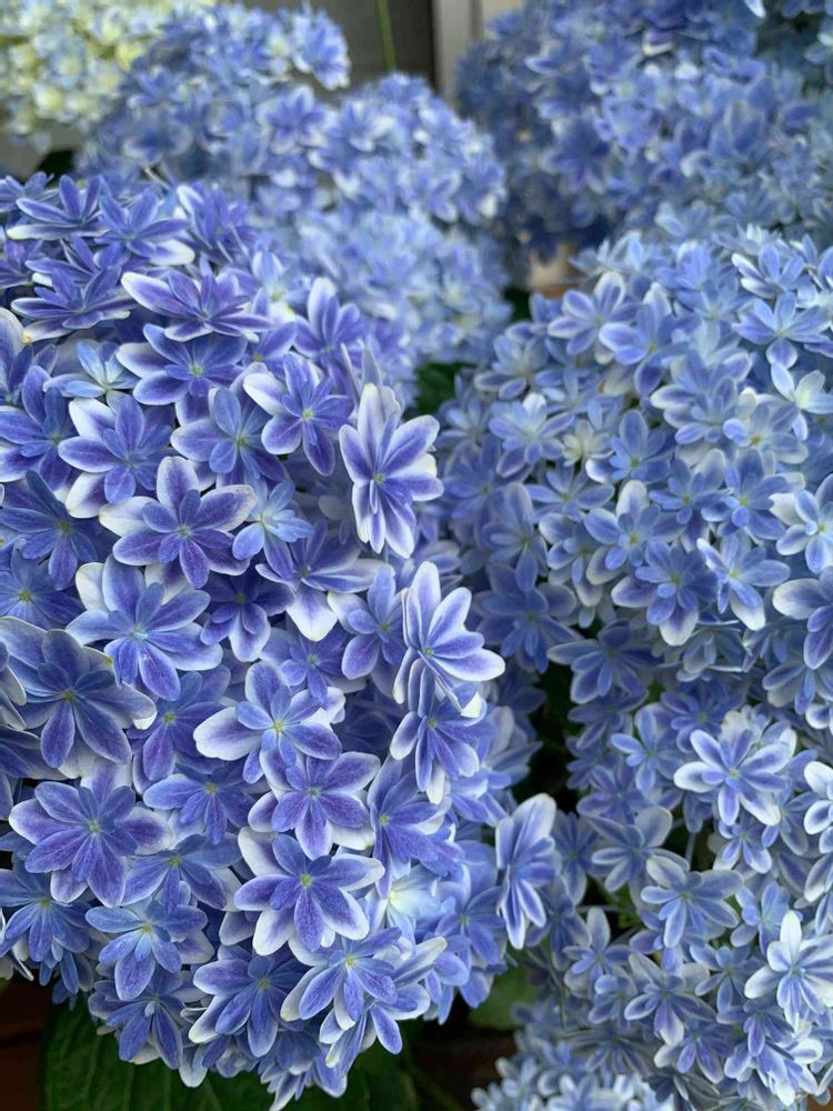 手前のお花が濃い紫に変化して来たら、左奥のはこれから青く色づくところ。いろんな色で咲いてくれていて、サービス精神旺盛な万華鏡さんです。