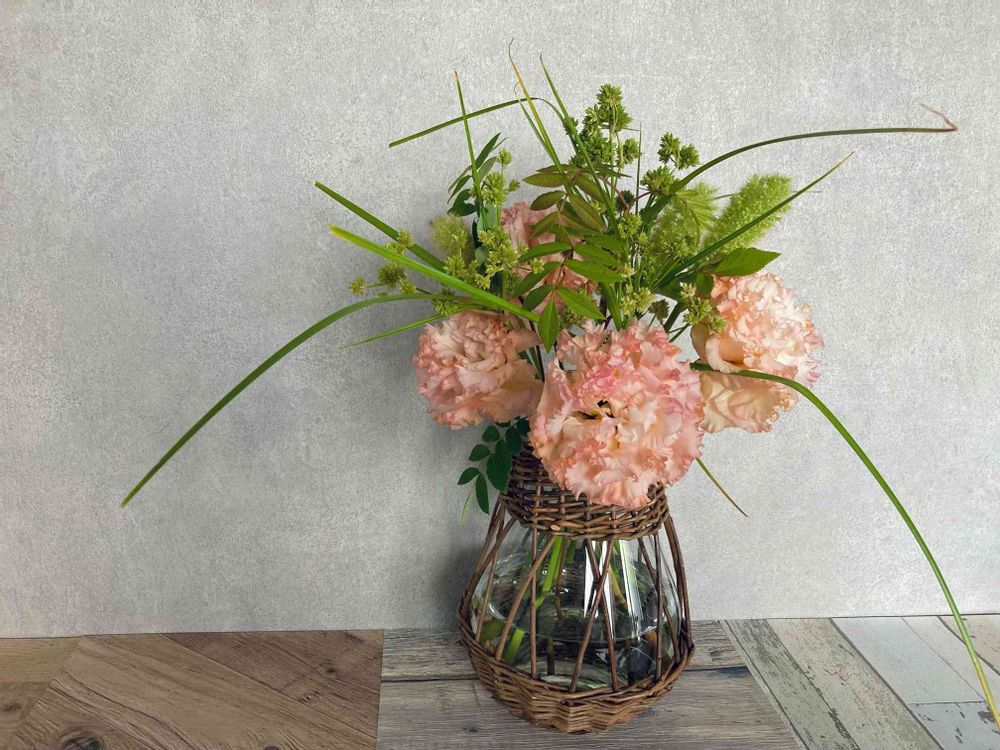 編み込みの花器と雰囲気が合っていて素敵ですね〜。:°ஐ..♡*
