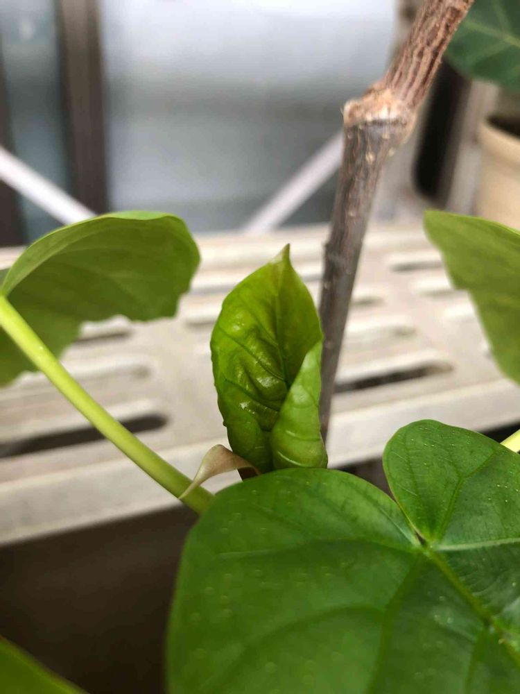 今朝ベランダに出てみたら、顔を出していた若葉が開き始めてました。