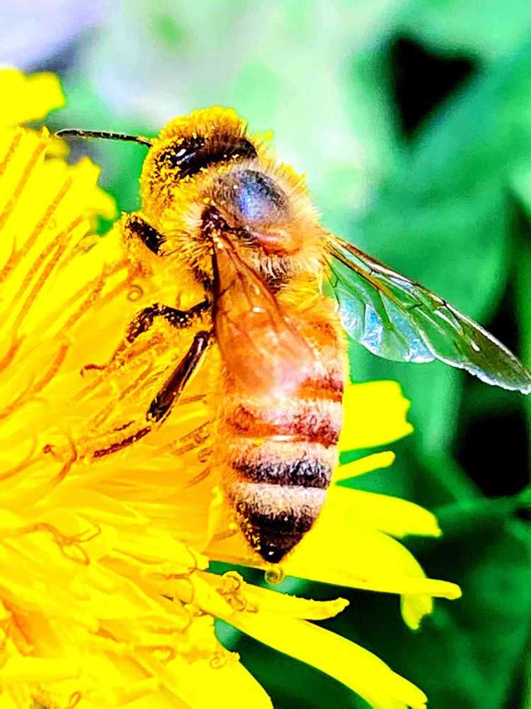 頭から花粉まみれの蜜蜂さん。一生懸命なのがいじらしいね🐝