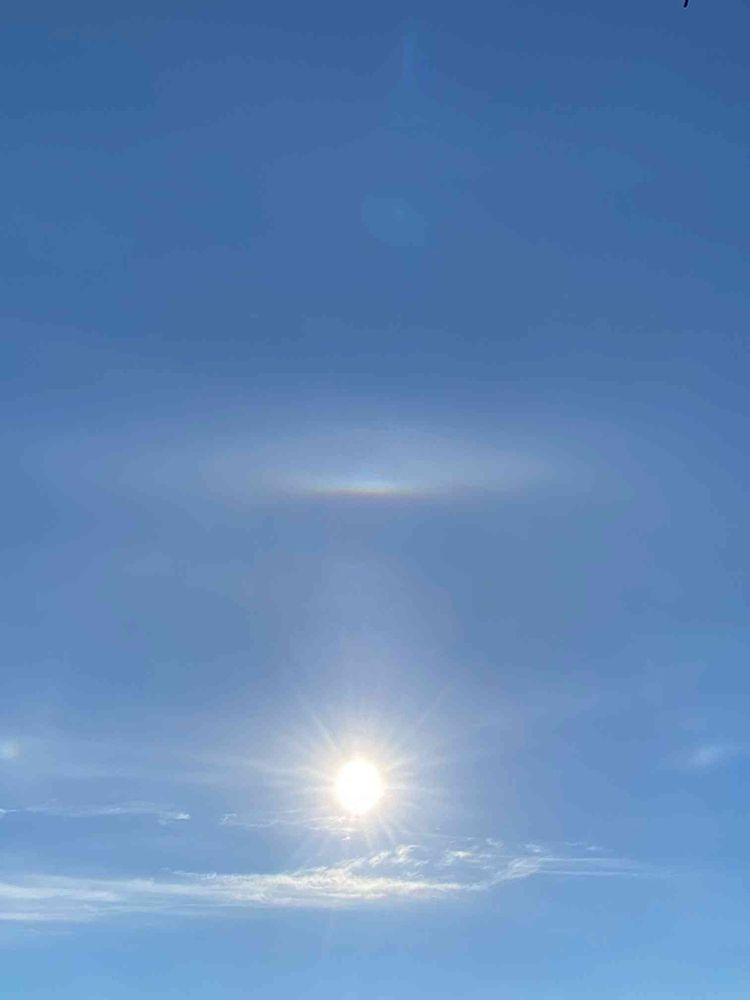 今朝仕事に出かけようと家を出たら東の方角の太陽の上のほうに出てました💕💕七時頃だったので丁度、環天頂アークの条件にピッタリ🎶🎶☺️