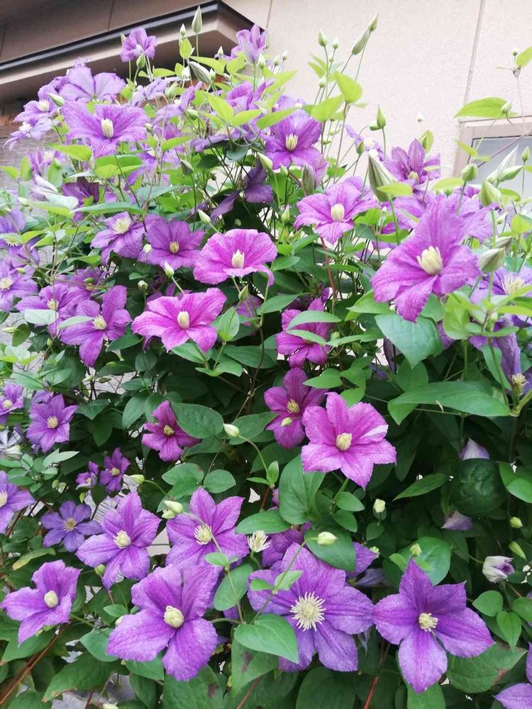 隣りに植えてある藤色の「あや」とは花数、勢い…対照的すぎ。毎年こんな具合、買った時にはイメージできなかった 💜🌱💜💦⤴😊
