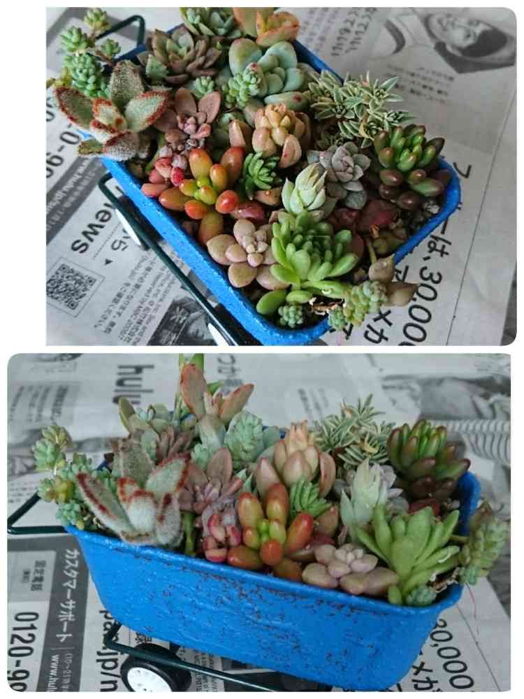 あんなカートでも、可愛く寄せ植えにして貰えたら、良く見えて来たぁ~⤴️⤴️⤴️😁👍ありがと。