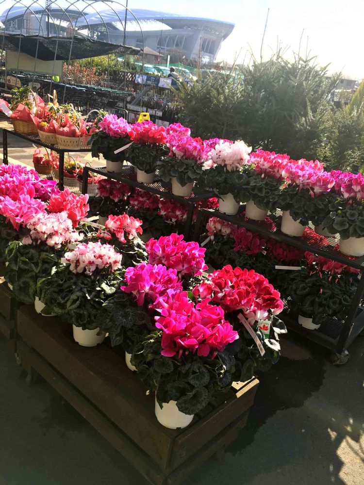 特価のシクラメン 置ききれないので、暖かい日中は外に置いています☀️