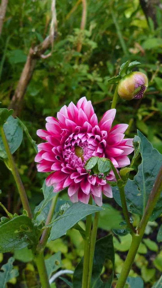 雨上がりの緑の中に美人のダリアさん