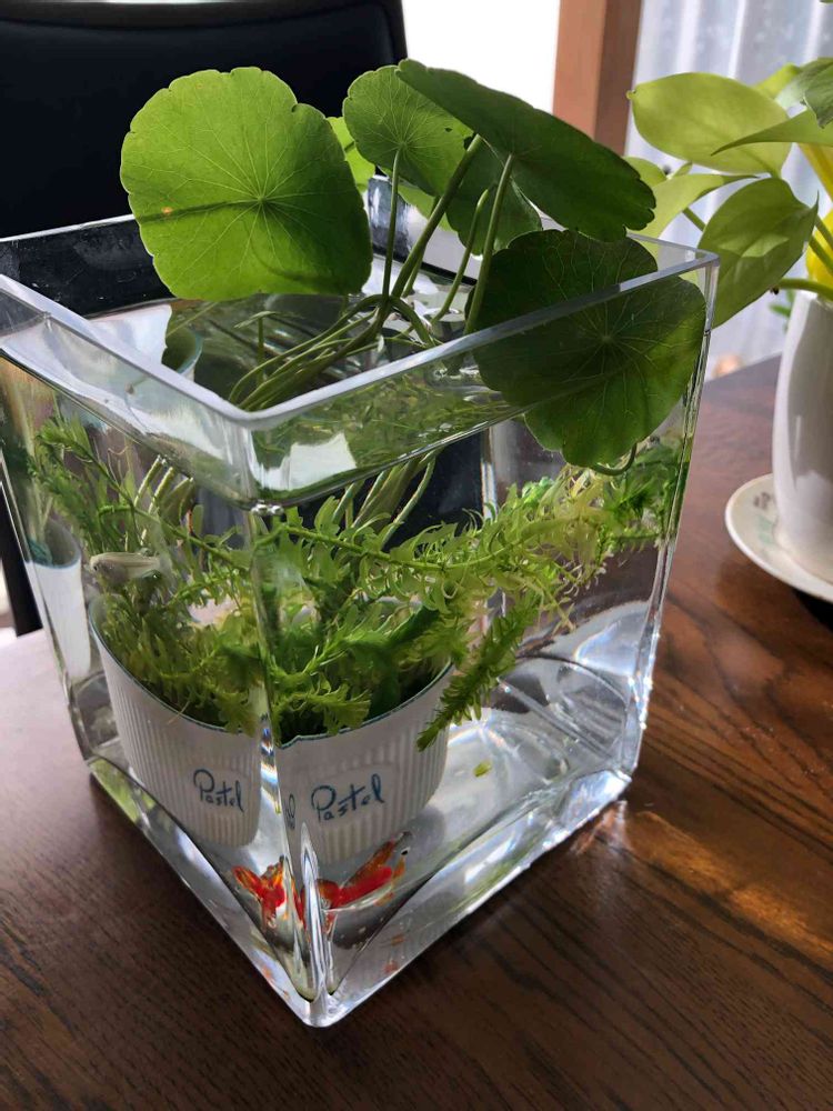 ウォーターマッシュルームと、水草のコラボ。メダカ達も嬉しそうです♪♪♪
