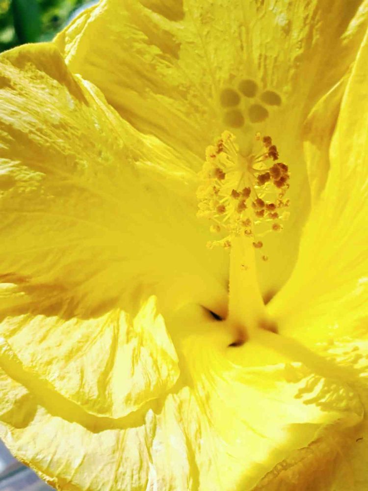 💛雨が上がり、明るい陽射しを受けて、レモンイエローのハイビスカスが輝いています