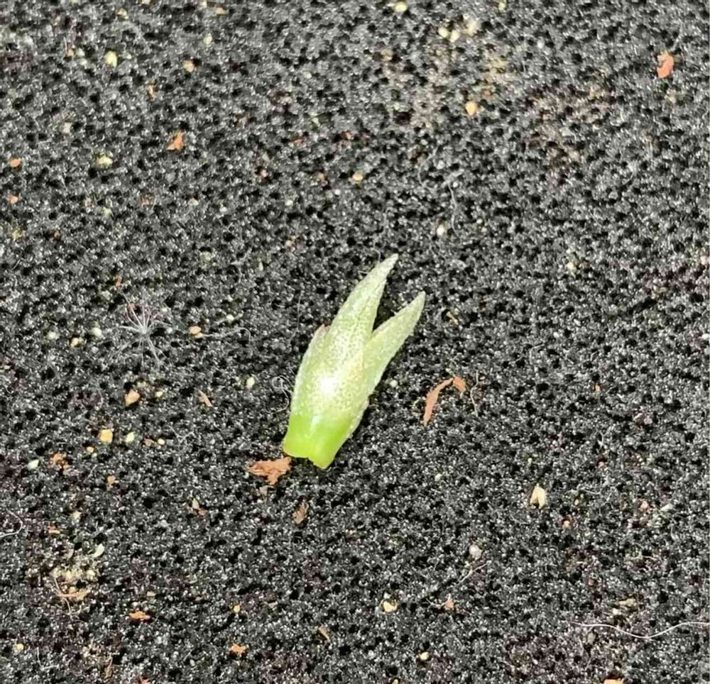 商品タグの輪ゴムが劣化し粘着していて、可哀想だった100均チランジア、昨年秋冬辺りに救出した子が、下葉を枯らしまくっていたので、おやまぁ蒸れたらいけないわ!とプチプチ取っていたら、お子様がいたのね!!