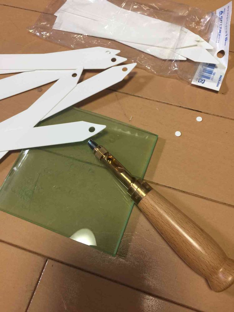 革細工とかの穴開けに使われる事が多いみたいだけど、替刃サイズも色々あるし、決めた位置に当てて押すだけで刃が回転して綺麗に台紙に穴を開けてくれる〜♪