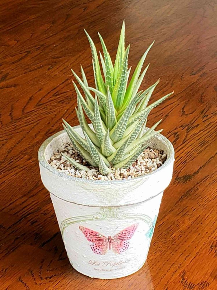 りばさんの素敵なリメ鉢に入っているハオルチア鼓笛錦で、しれっと 🏷️イーオンナ美人の日 に参加します。🎶