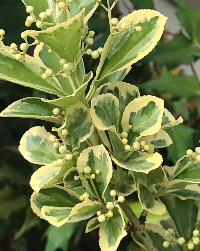 斑入りの葉っぱに小さな玉が沢山付いていました〜‼︎ 斑入りマサキと教えて頂きましたー🙇♀️🙋♀️💕😁✌️🌸