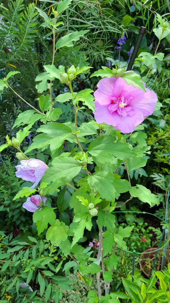 小さな庭,ムクゲ、ラベンダーシフォン,鉢植えの投稿画像