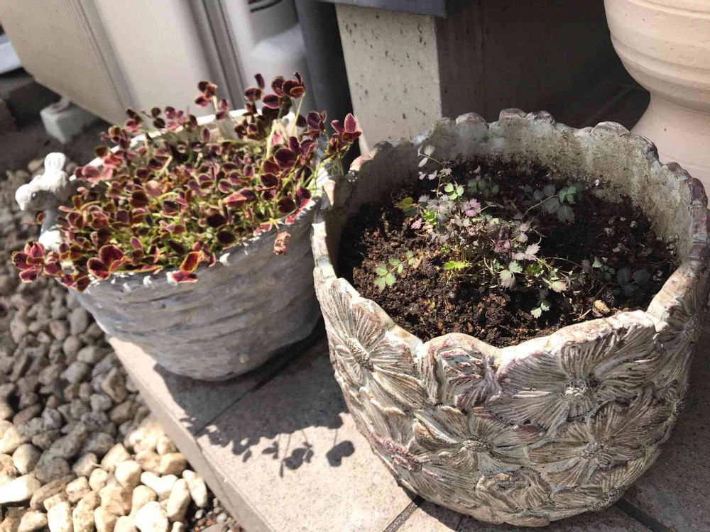 かわいい鉢を買ったので、それぞれ単独で植えてみた♪