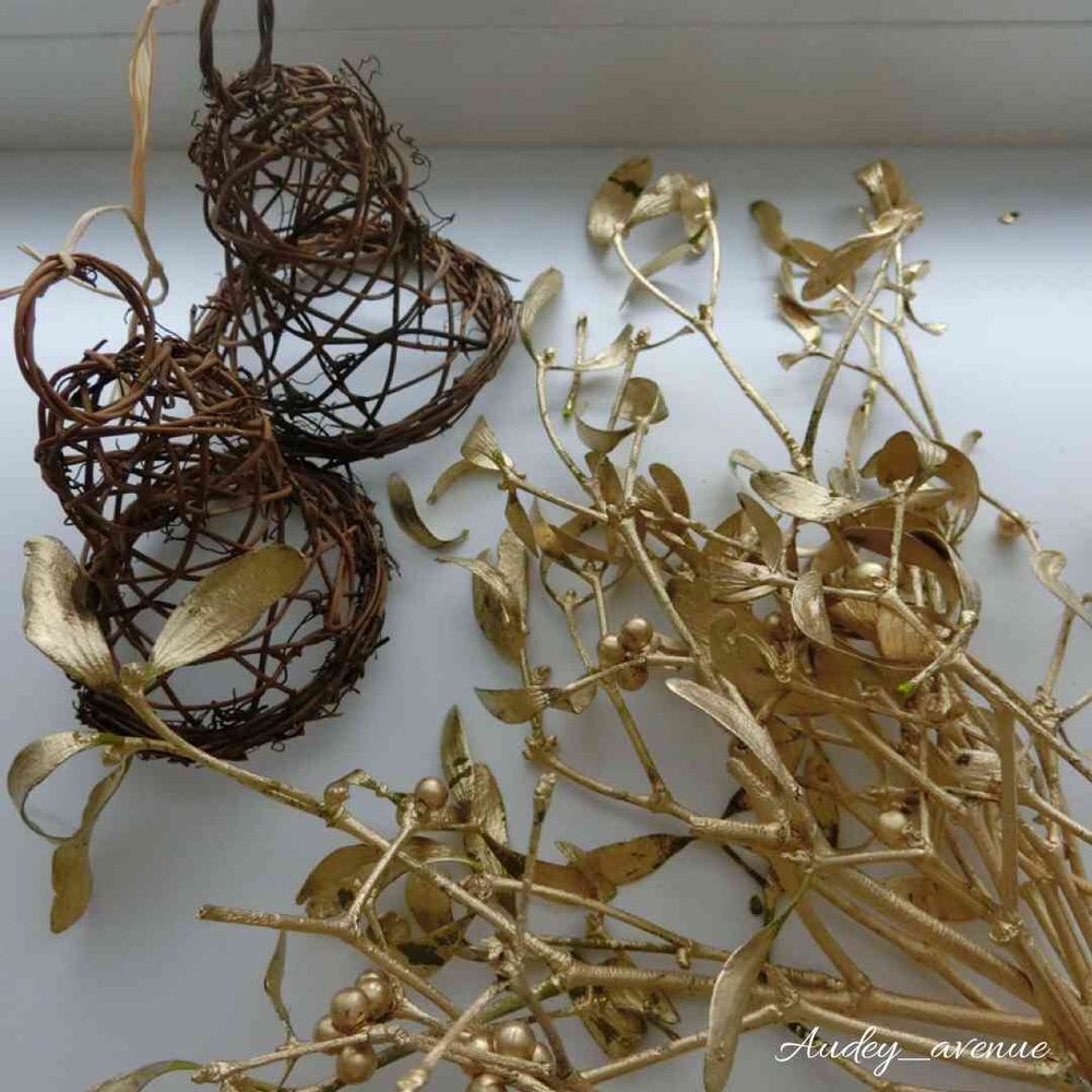 ツルで編んだベル可愛い😍ヤドリギのコーティングはゴールドだとお正月も使えそう✨✨