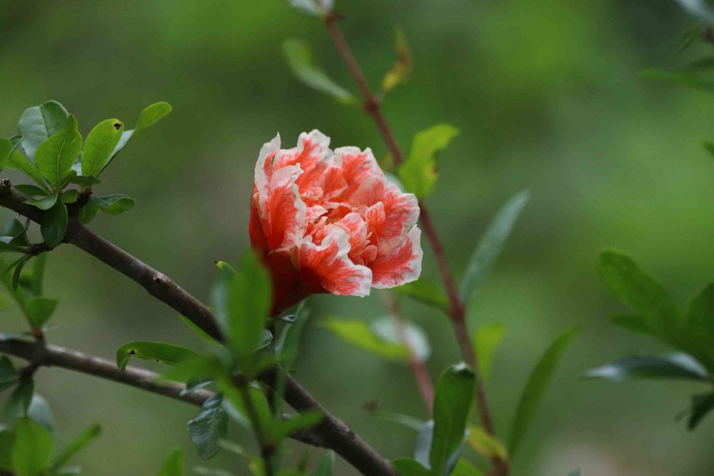 今日のお花 朱色に白覆輪の 園芸品種のハナザクロです