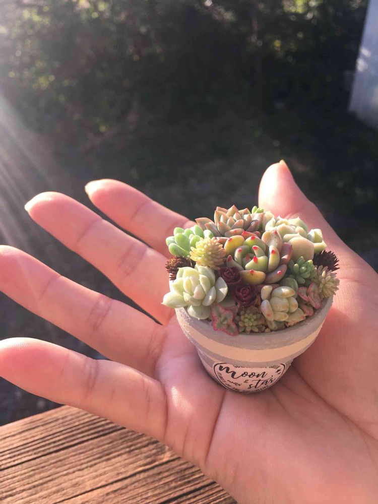 手に乗せた1号豆鉢ちまちま寄せ❤︎(◍ ´꒳` ◍)b