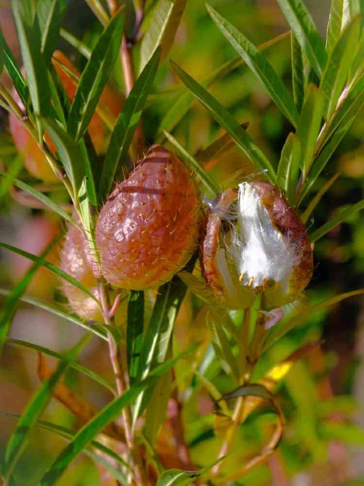 晩秋になると実がカパッと割れ中から綿毛とタネが出てきます。