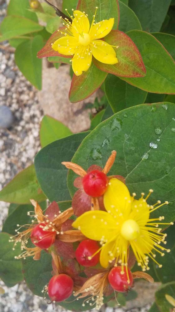 🟡黄色の花が散ると赤い実が残り、熟すと黒いように変わっていきます🌼🌼🌼
