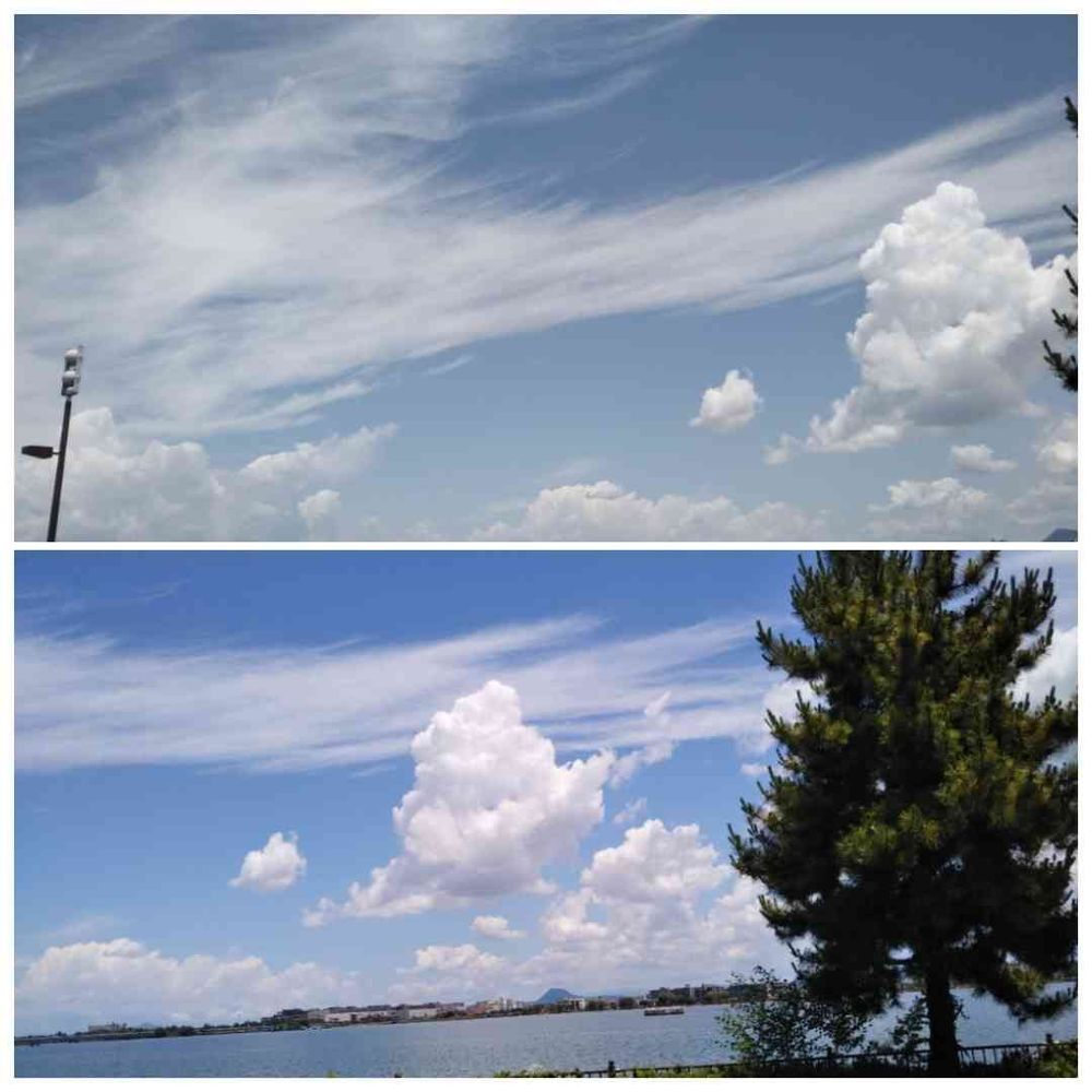 湖畔の青空に浮かぶ☁