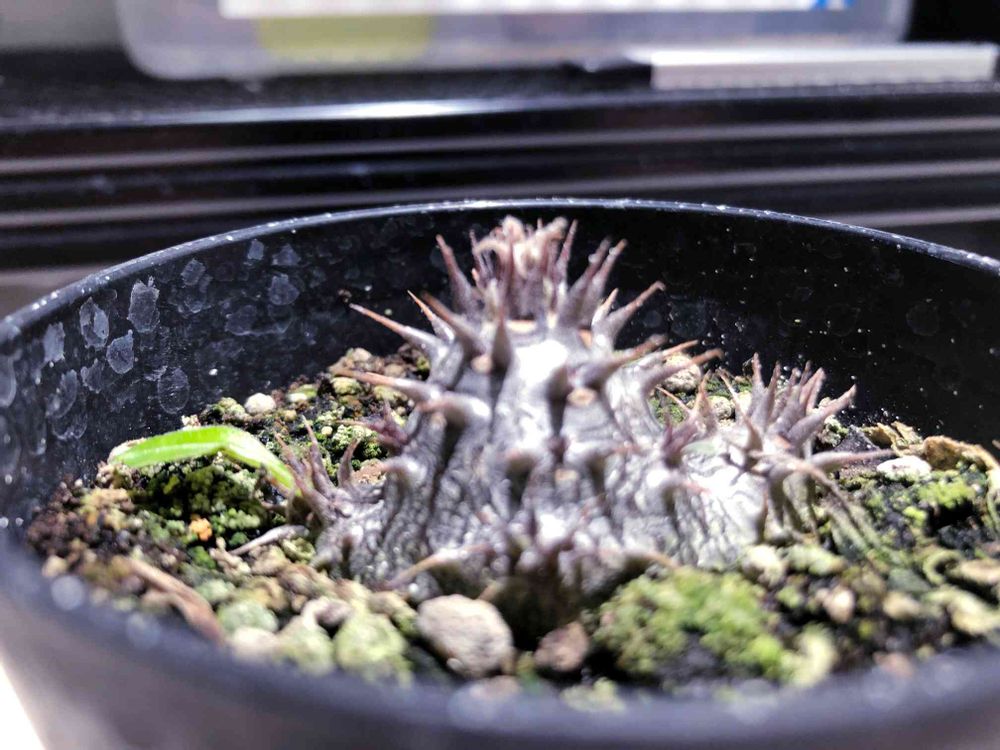 なんか、かなり水持ちのいいような、黒い土に埋まっています。生産者から買って実生なのでこのままなら問題ないのでしょうが。
