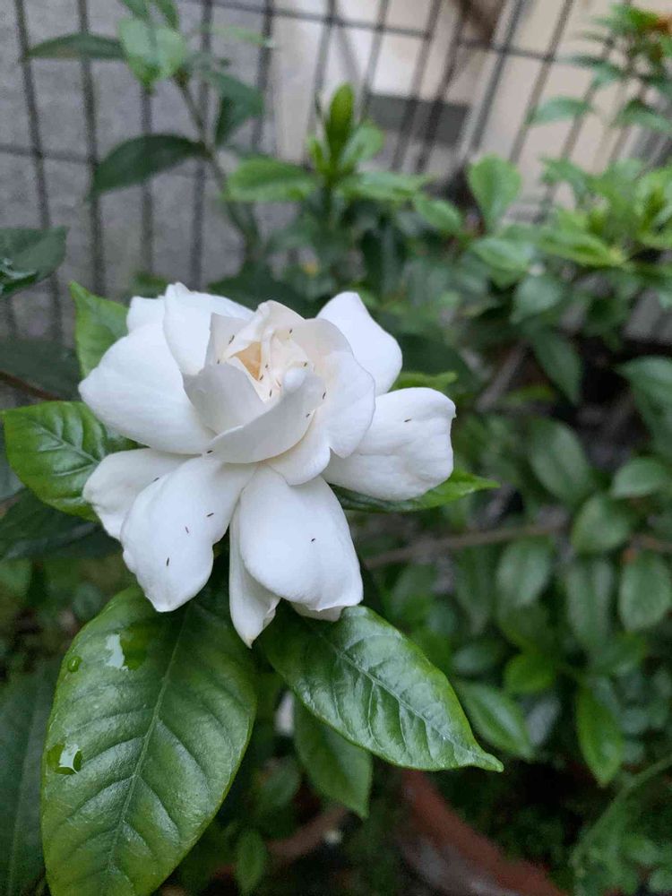 クチナシが今年も咲きました。昨年より、沢山花を付けて居ましたが、今年は小ぶりです。スリップ沢山💦