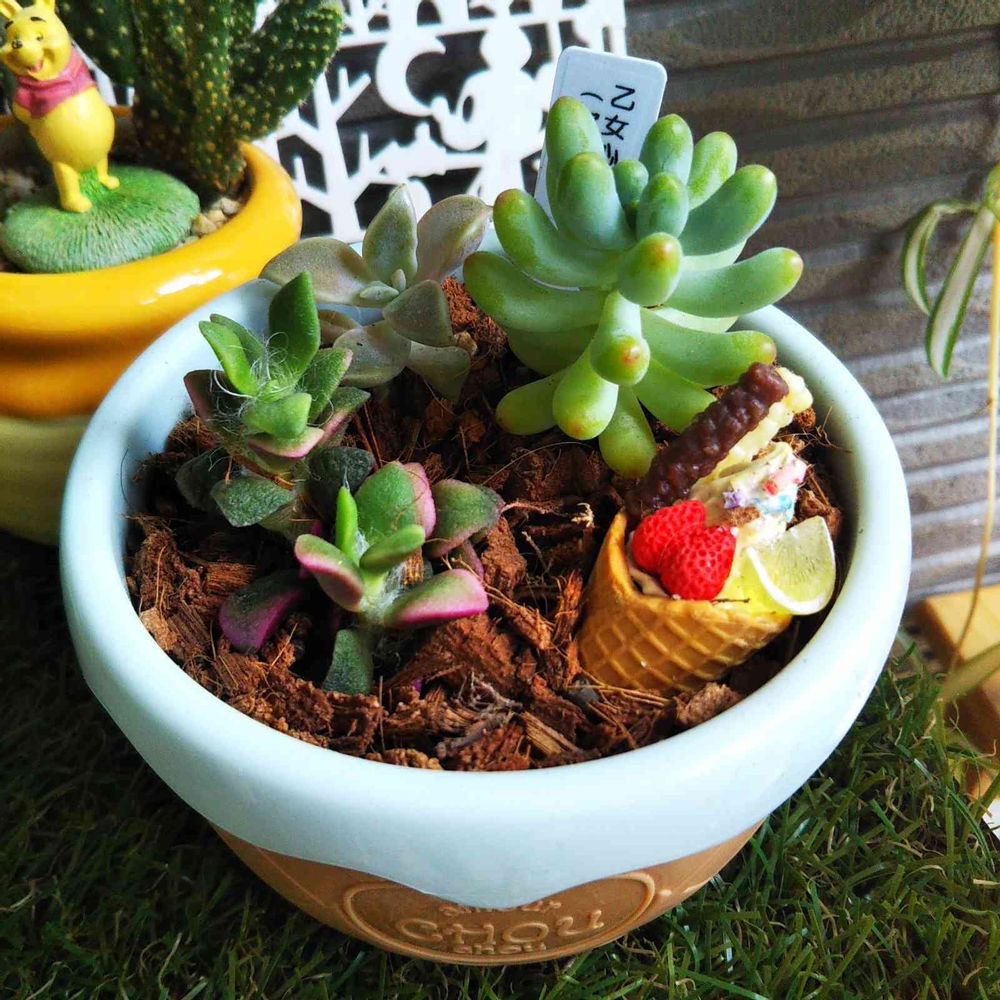 アイスカップの底に穴を開けた、勝手にスイーツ多肉鉢。