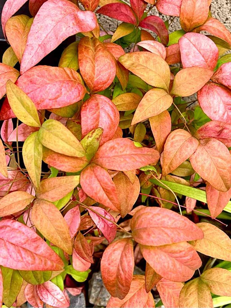 ついこの前まで緑が目立つなぁって思ってたら、もう赤が勝ってきました。このグラデーションの変化がおたふく南天の醍醐味ですね。😊