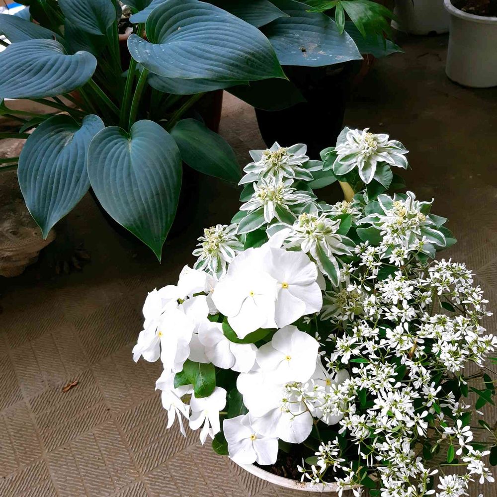 バルコニー/ベランダ,ニチニチソウ,ユーフォルビア・ダイヤモンドフロストの投稿画像