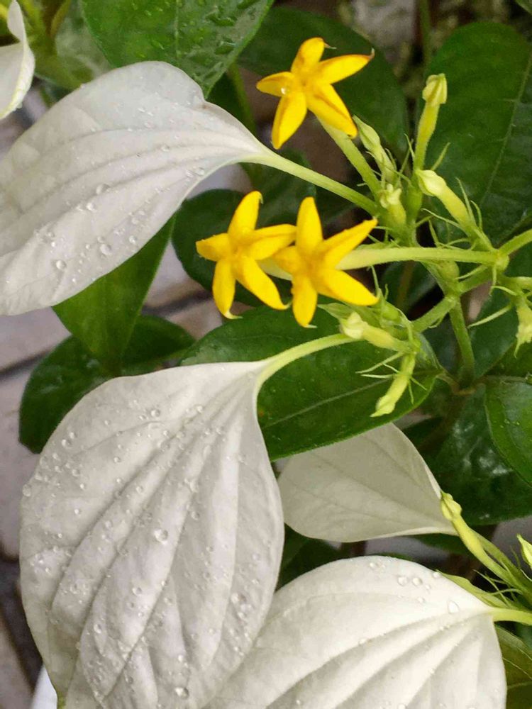 黄色の⭐︎がお花です。白い花びらはホウと呼ばれるもので黄色の⭐︎花とて一対になってます♡