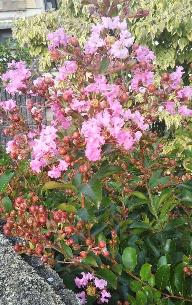 夏の間 何回も咲くんです 夏の花 幹がツルツルで サルスベリ🐒です