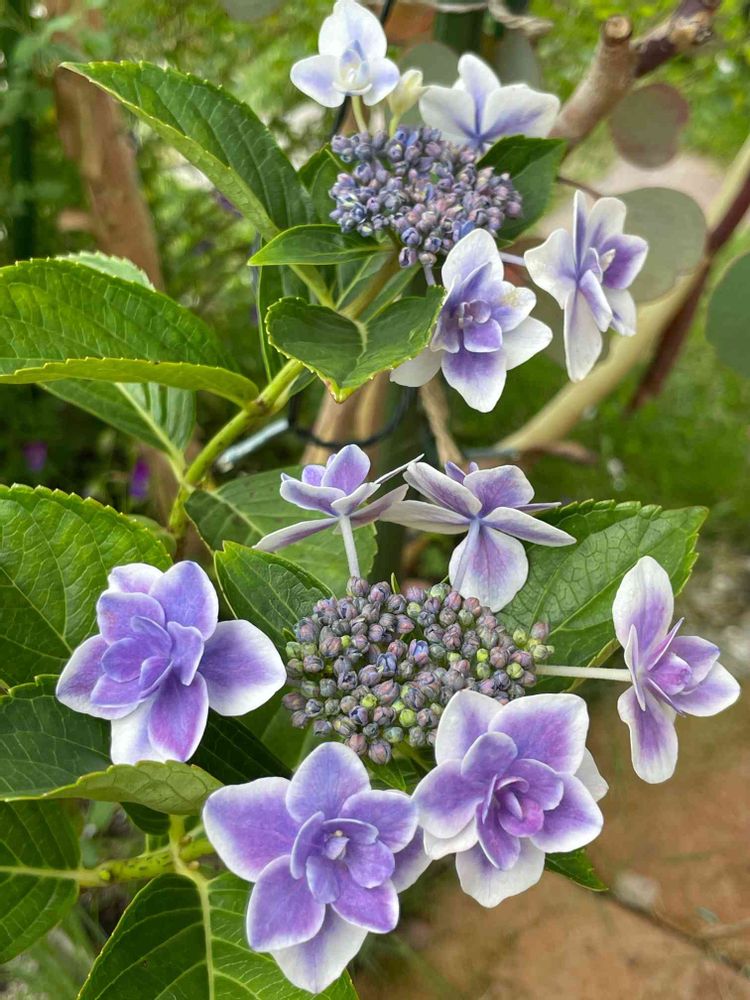 翌年は地植えにしたら青に😵ピンクの花が咲くように肥料も施したのに、色は青にそしてあまり花すらつかず…今年は鉢上げしてもう一度ピンクの肥料を施し…しかし咲いた紫陽花は青だった😭